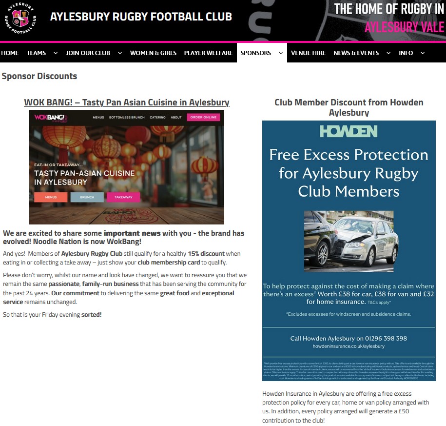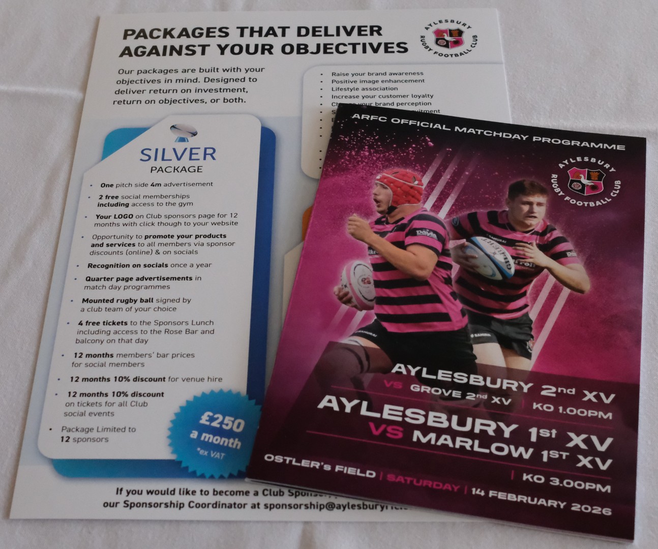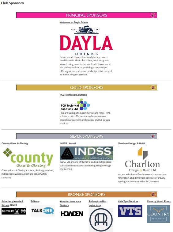 If you would like to order a package or learn more about becoming a sponsor please email Jim at sponsorship@aylesburyrfc.co.uk